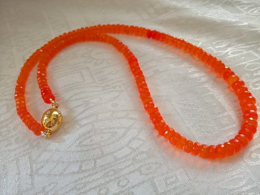 Náhrdelník přírodní etiopský opál vybroušený do faset, nádherná jiskřivá oranžová barva |
