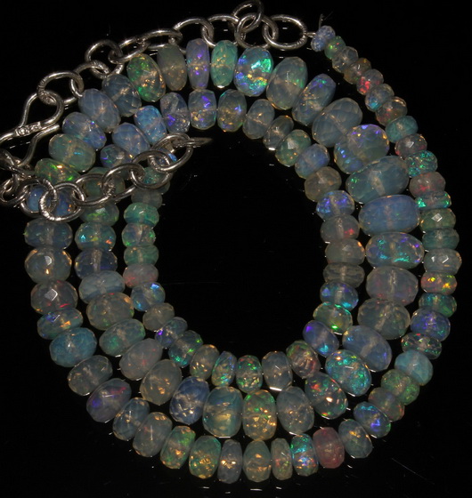 Opálový náhrdelník přírodní etiopský duhový opál, rondelky 4-8mm zabroušené do faset pro jiskřivý třpyt. |