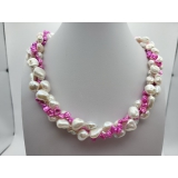 Perlový náhrdelník jezerní bílé perly a modrý křišťál