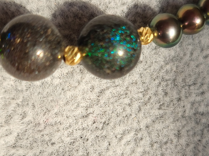 Perlový náhrdelník jezerní bílé perly a černý australský opál matrix. Vše navlečeno na hedvábné niti, nádherná barva i lesk. |