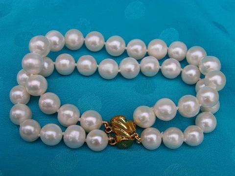 Perlový náramek navlečený na hedvábné niti, jezerní perly, velmi dobrá kvalita, krásný lesk |